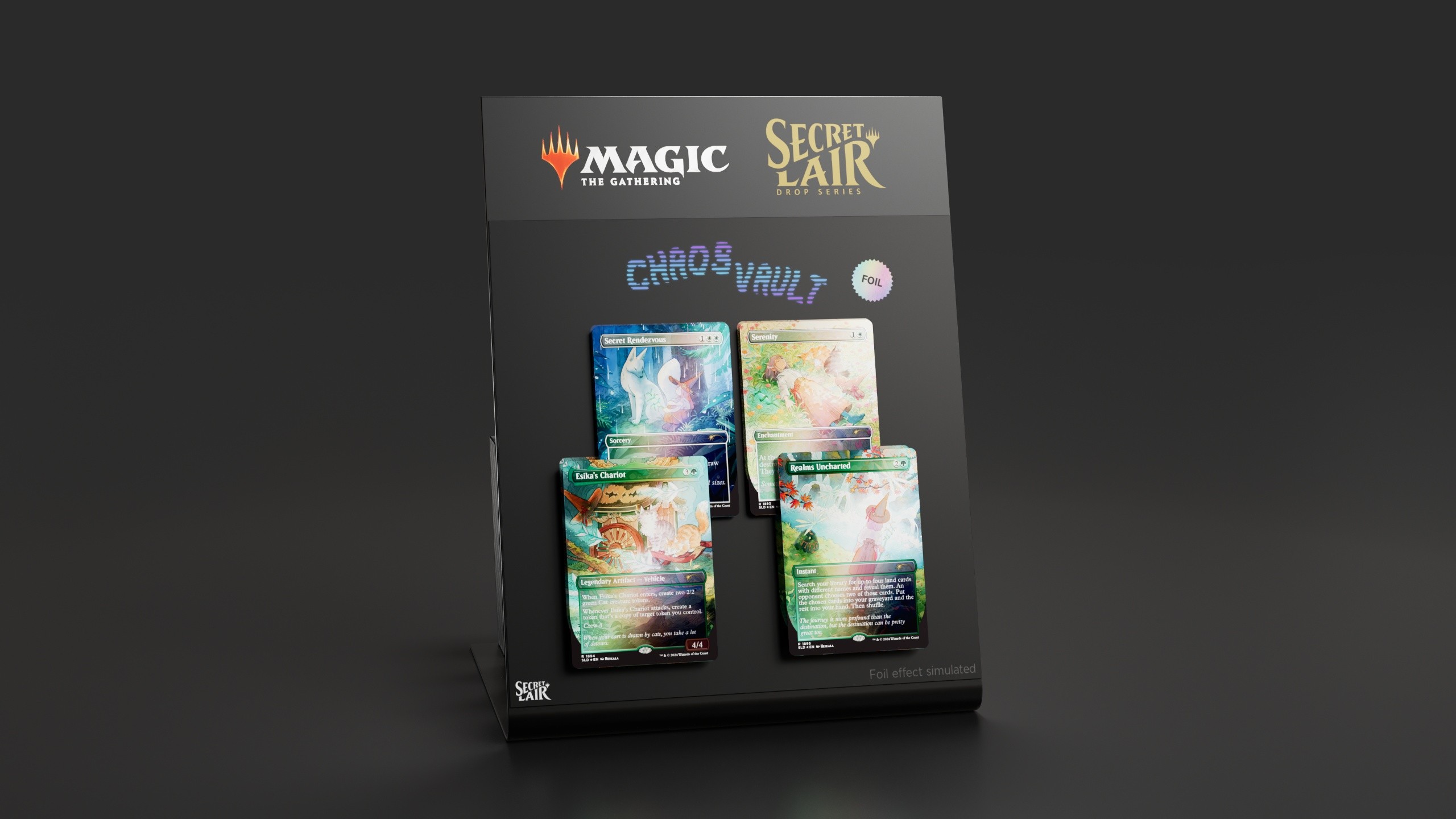 Magic: The Gathering Secret Lair promo sign with envelope dispenser.